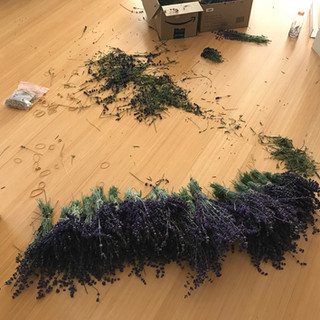 The English lavender is ready to harvest. The Lavender was harvested over 2 days and is now in bunches drying. The French lavender is not quite ready yet. In the first full year since planted the English lavender produces 6x more flowers than the 2016 year.